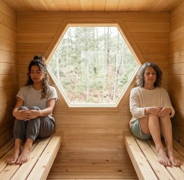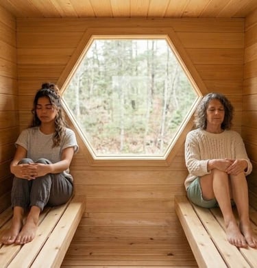 Each pod offers a sensory journey, blending gentle warmth and subtle hexagon patterns to soothe your mind and body.